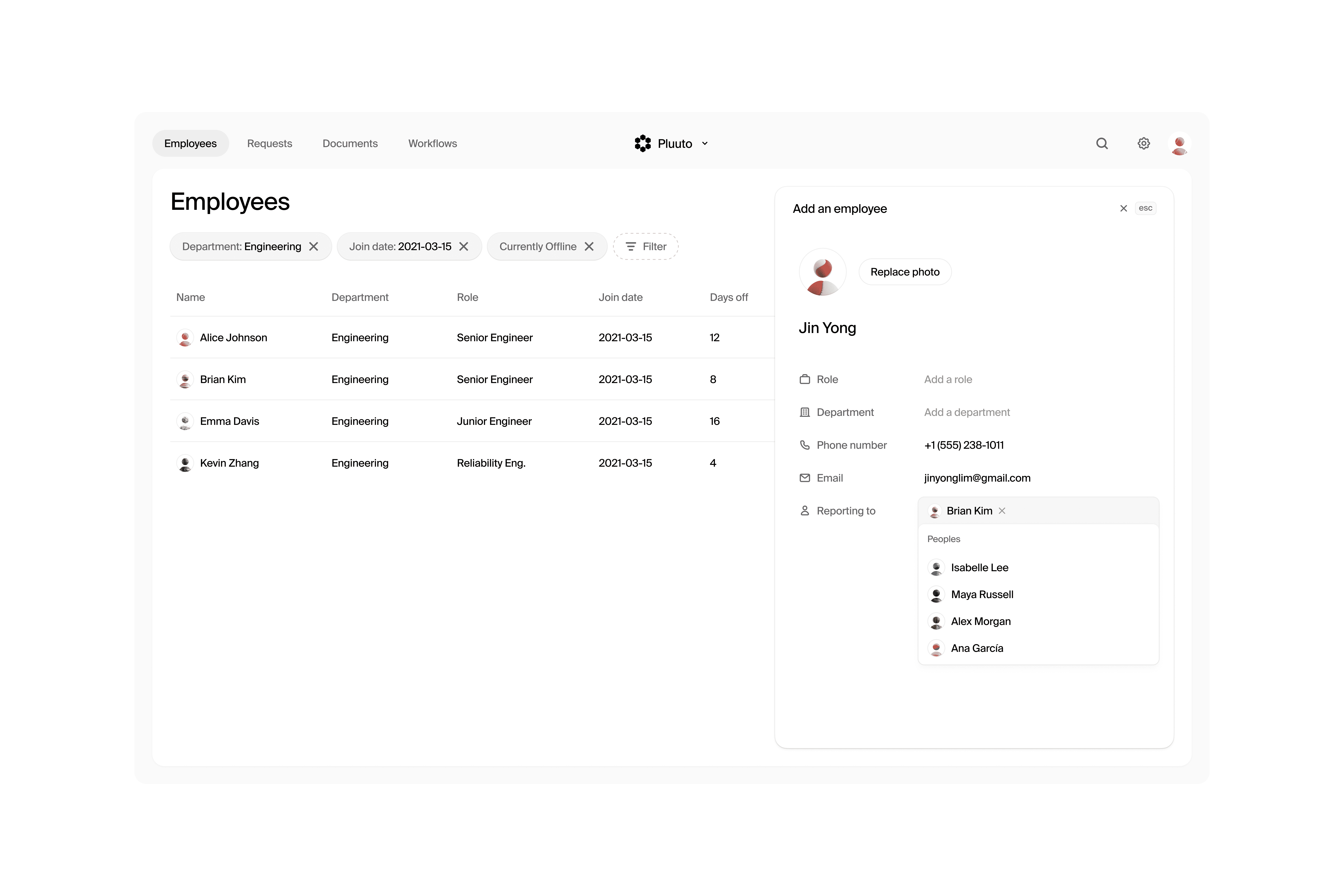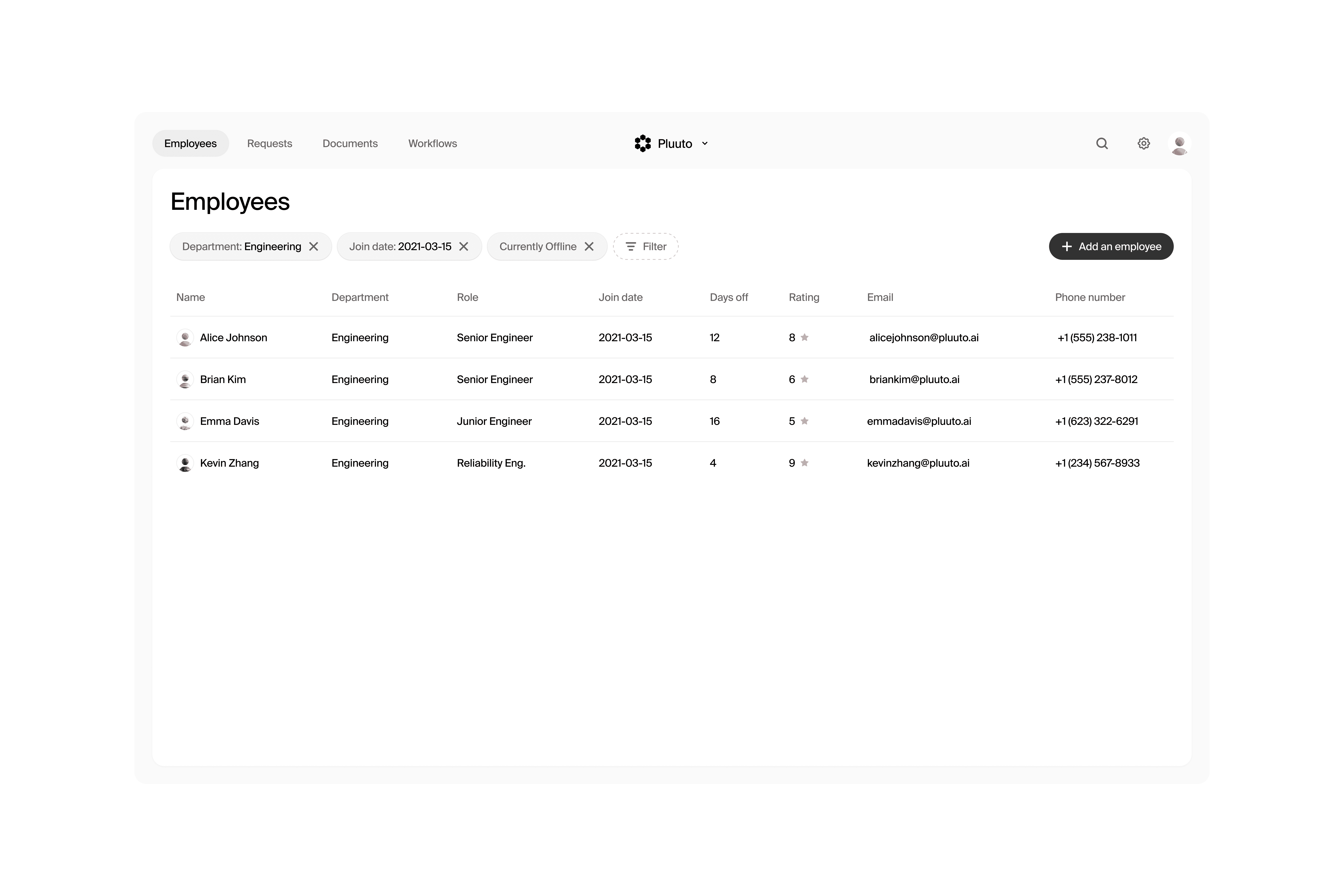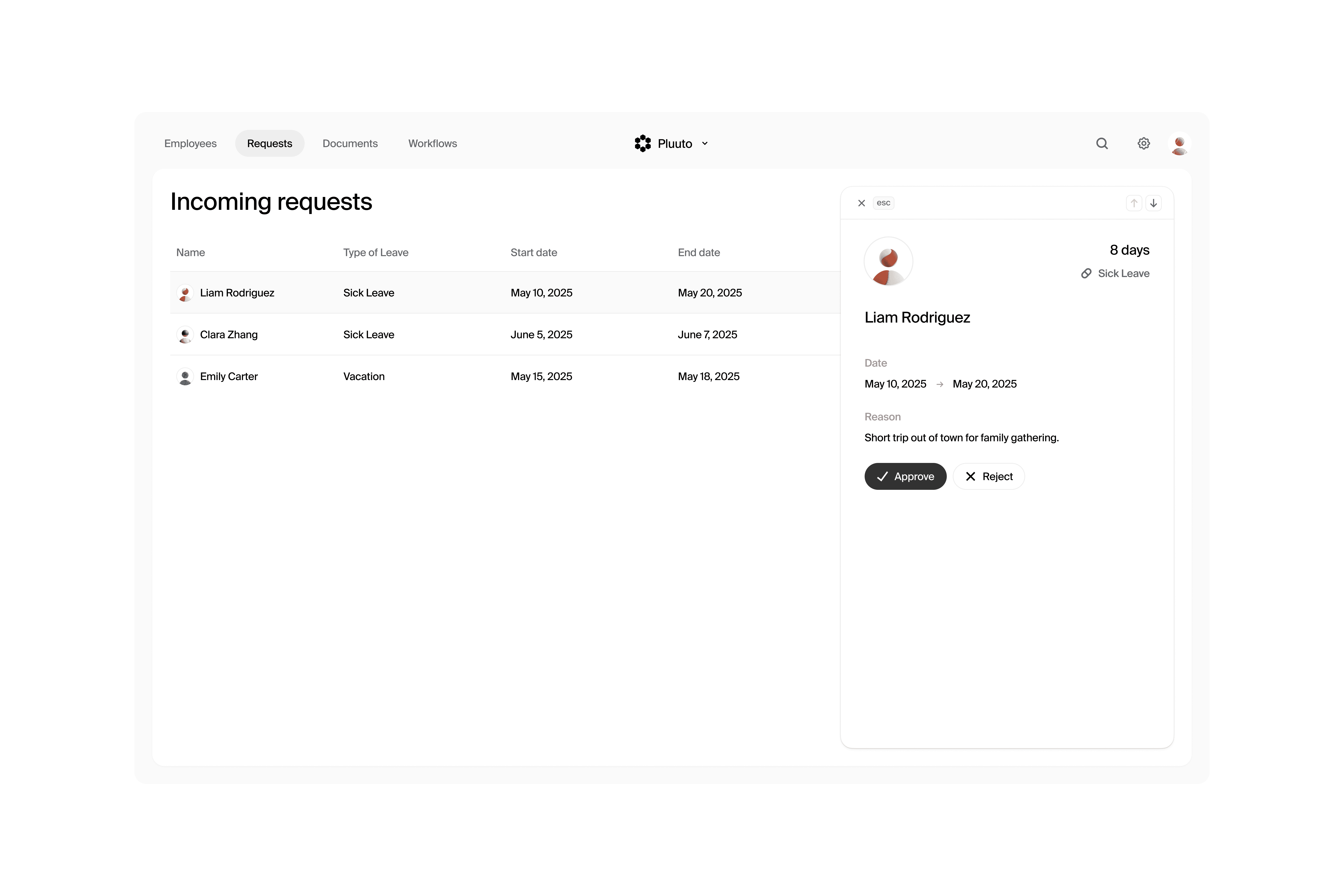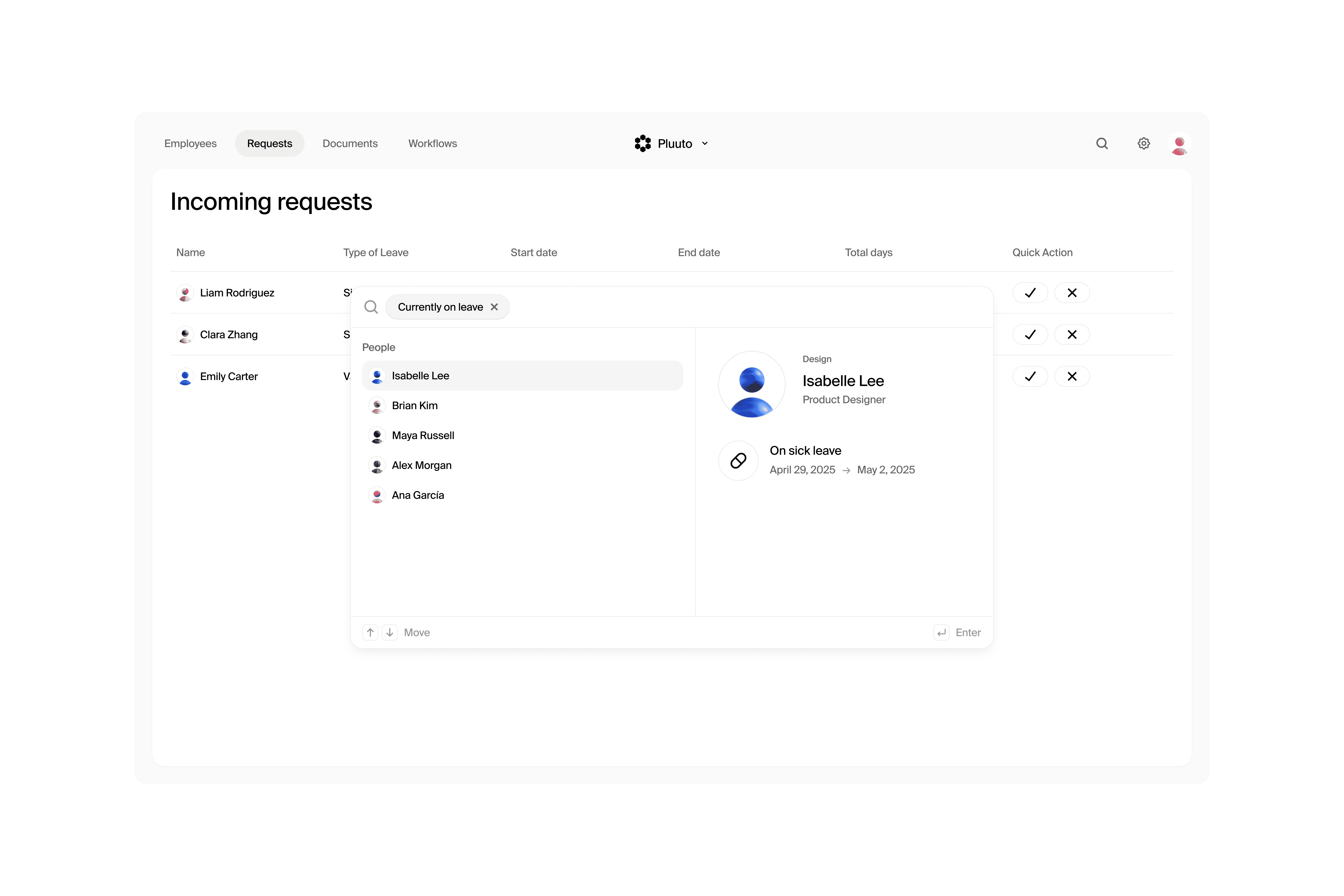 Managing employees across multiple tools can be messy. This HR app solves that by combining the directory, documents, workflows, and performance data with AI-powered search. Employees and managers each get tailored dashboards for requesting and approving leave with ease.